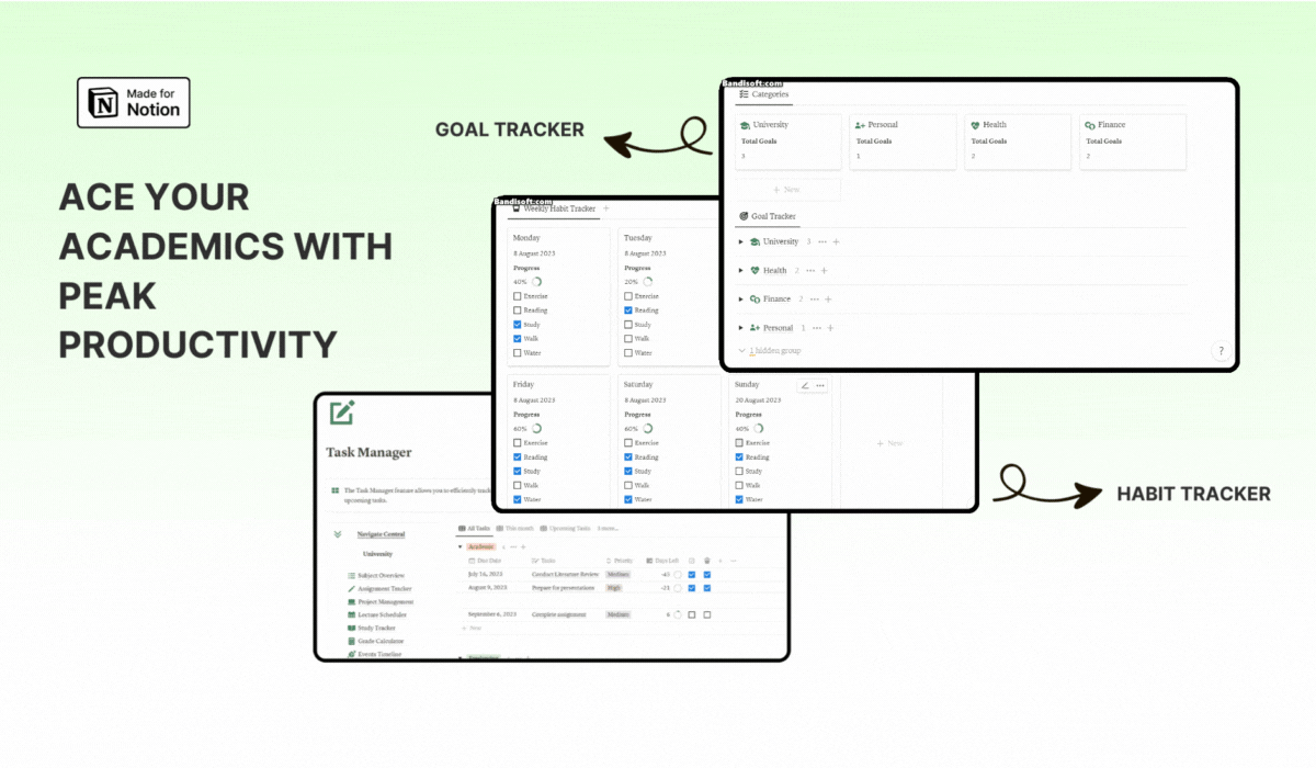 The Ultimate Student Hub has got you covered from beginning to end with specific layouts for all aspects of college life.