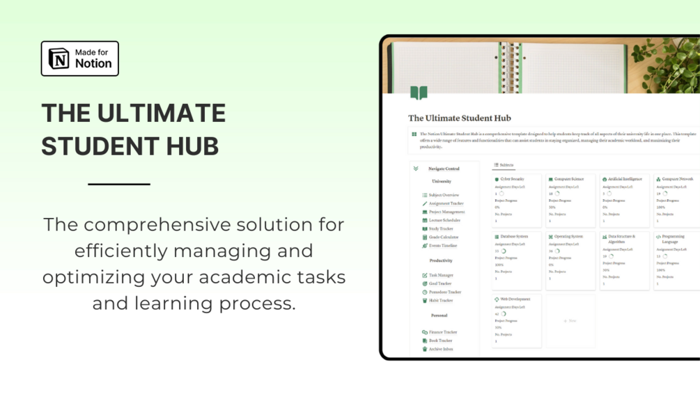 The Ultimate Student Hub template for Notion is the ultimate tool to revolutionize your academic life. This comprehensive template offers a wide range of features designed to help you stay organized, manage your tasks, track your progress, and optimize your learning experience.